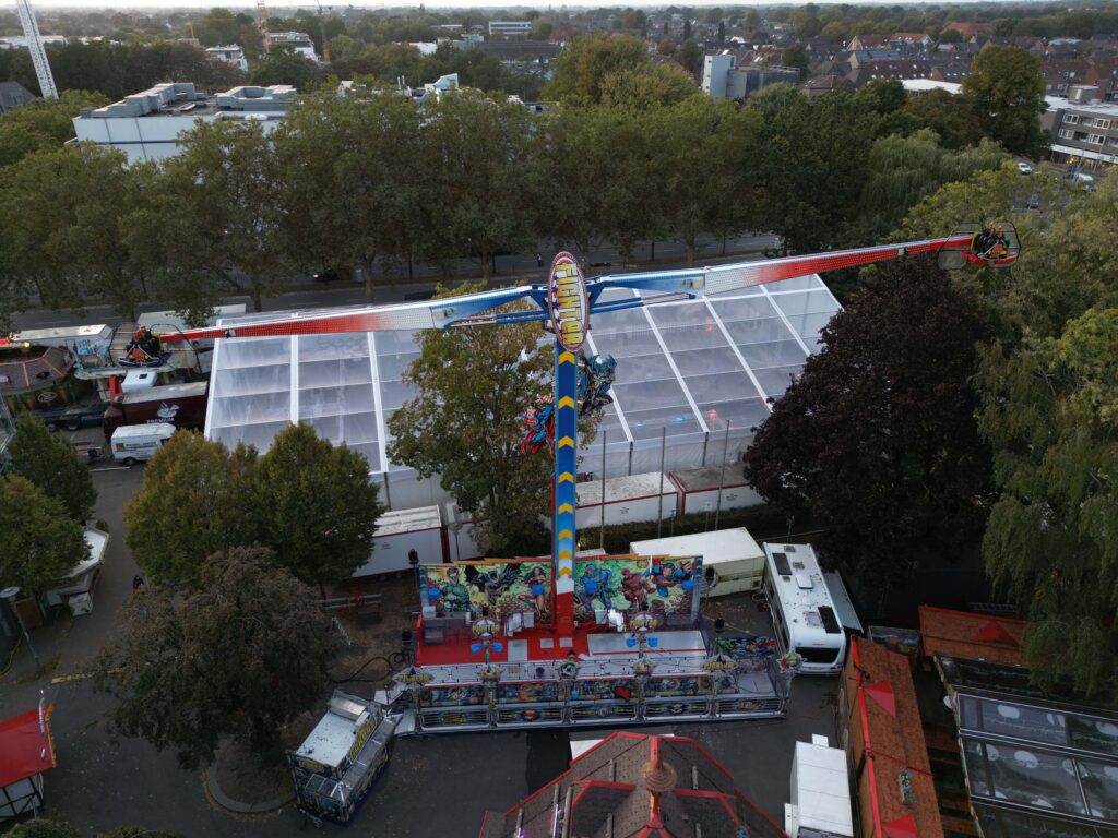 Name: Airborne Schausteller: Ordelmann Hersteller: KMG Typ: Speed 32 Baujahr: 2020 Maße (B x T x H): 19m x 14m x 65m Kapazität: 32 Personen in 2 Gondeln Bilder: Weitere…